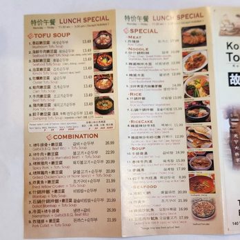 Korean Tofu House menu including prices opening hours. Know what to expect at your local.